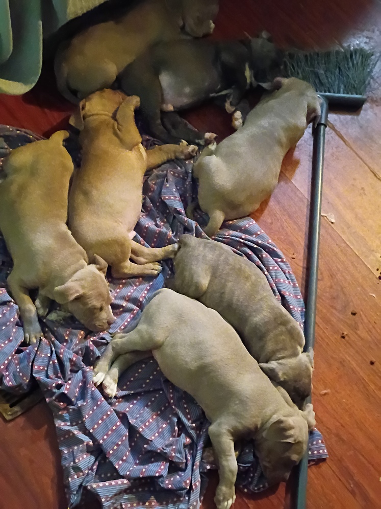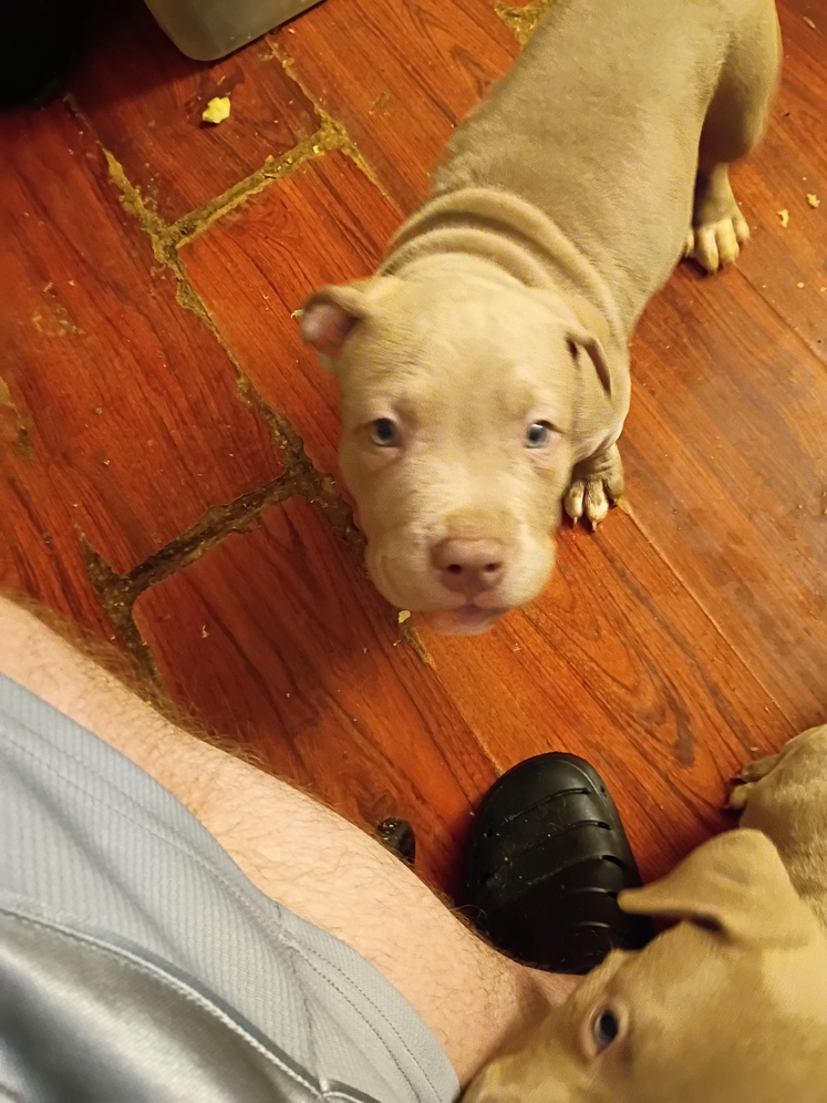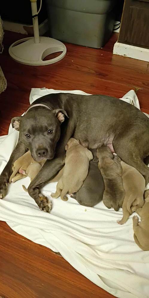 I have 7 full pit puppies 8 weeks old no shots yet 4 males 3 females grey is a boy and mixed color is a girl all great love to play asking 500 text