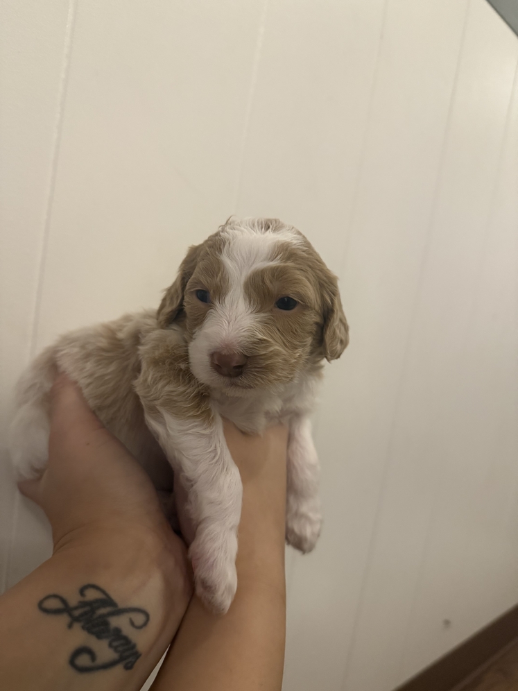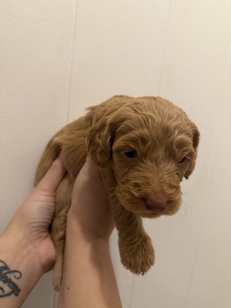 Golden-Doodle Puppies 4 Females 2 Males Born: December 27, 2025 Mother is Ak Registered and on site, Dad is a brown Goldendoodle They will be ready for new homes at the end of February 2000 Rehoming Fee 500 non-refundable deposit They are popular, friendly, intelligent, low shedding companies and are known for being great with families of all sizes. They will require regular grooming. Please PM for more info Serious Inquiries Only