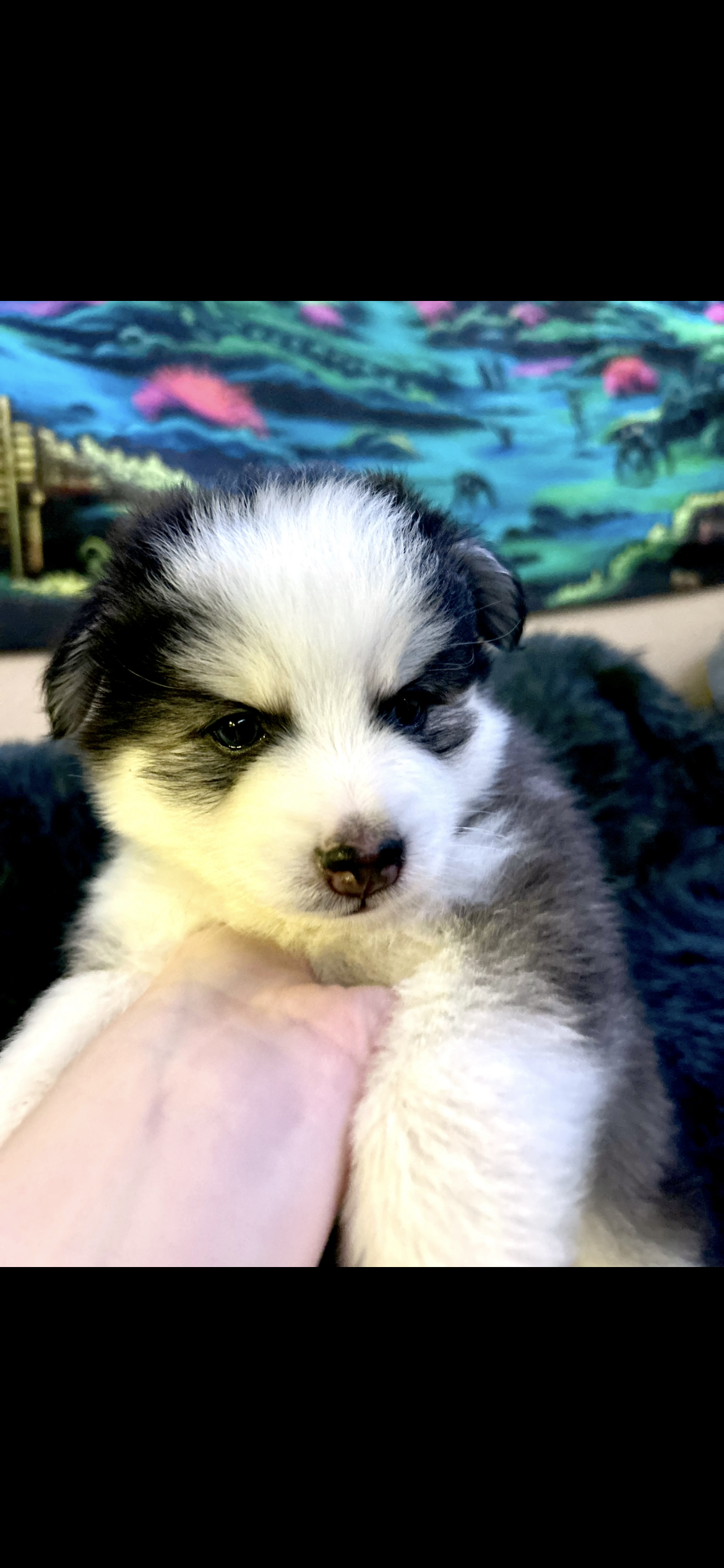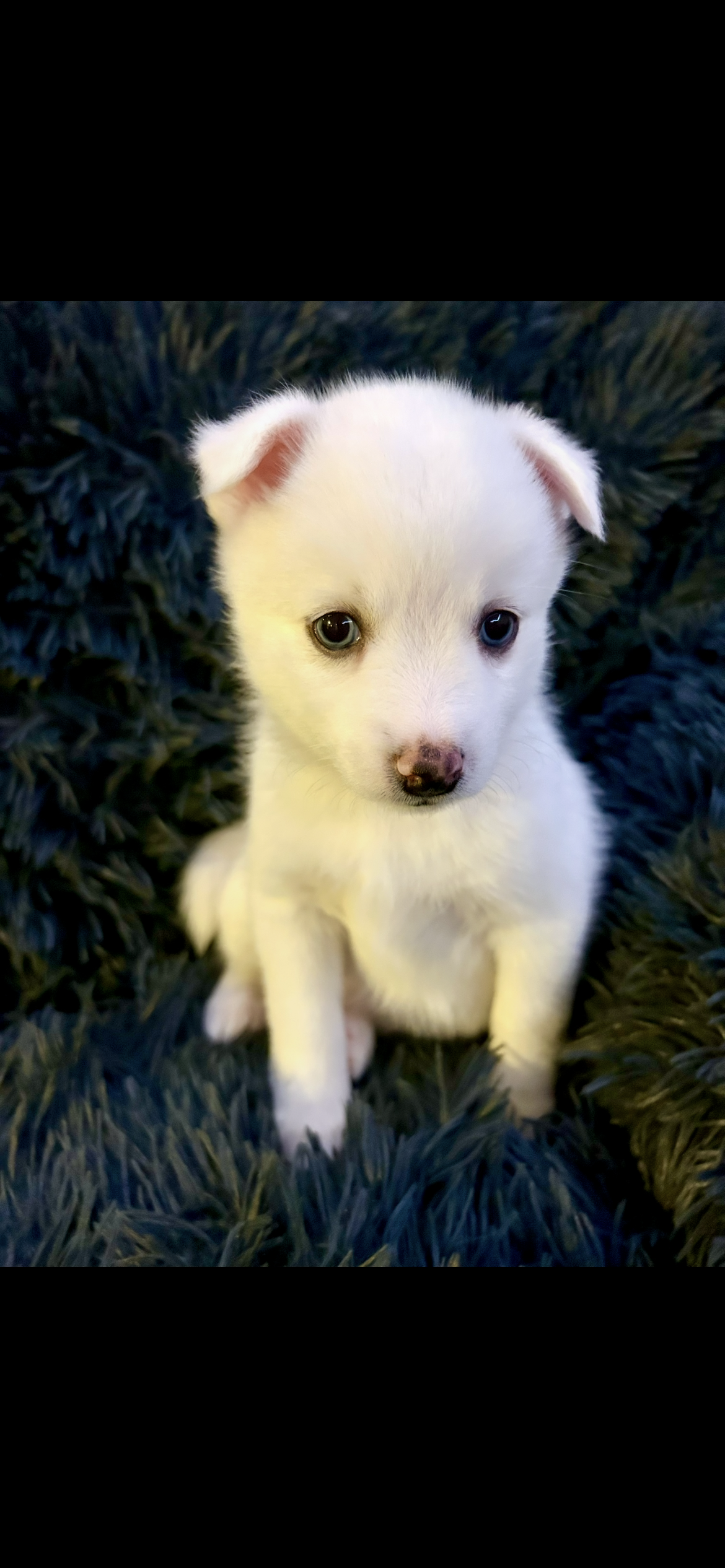 Four Pomsky puppies for sale! All are mostly piddle pad trained and will go home with first round of shots. Their personalities are sooo sweet and playful/friendly! All puppies have bright blue eyes and will be miniature in size, likely 12-17 lbs ( but I can give estimates on each puppy individually if asked! ) they have been very well socialized and handled often. READY TO GO HOME FEBRUARY 8th! Black with white head- girl 2,500 White- boy 2,500 White- girl 2,500 Black and white long hair - boy- $3,000 Text for more information!
