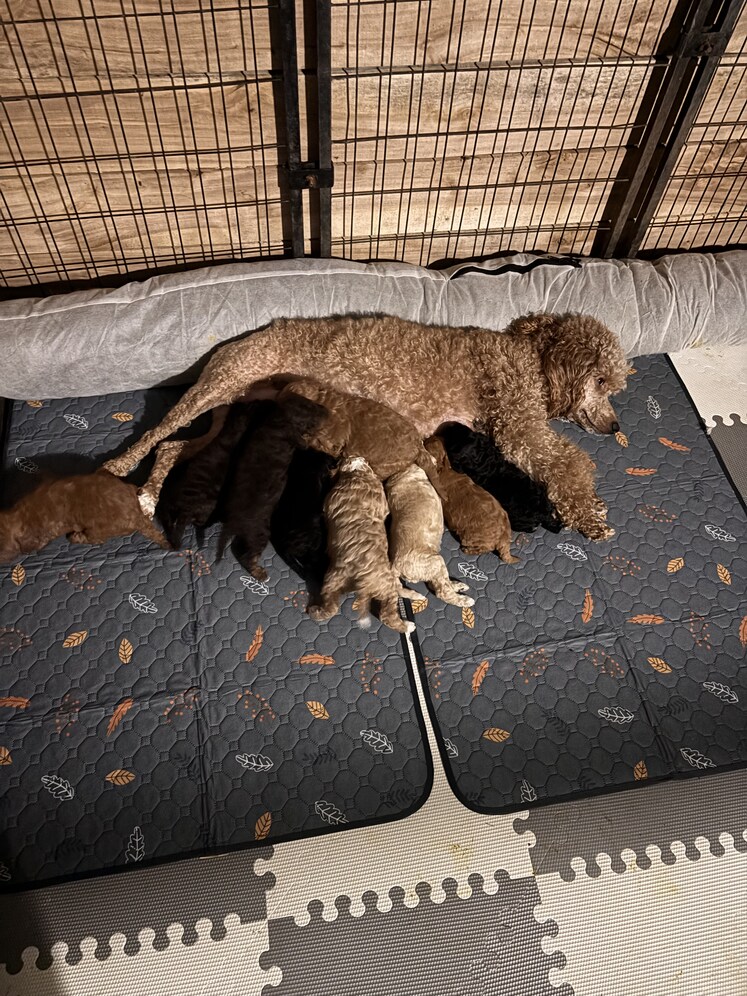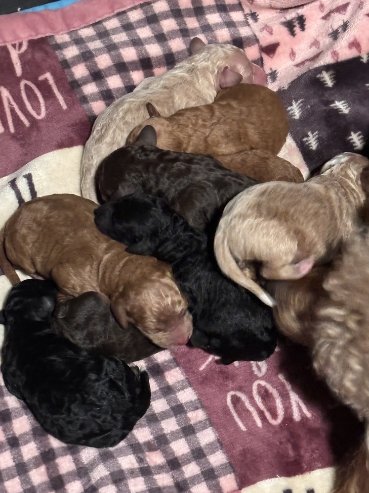 Beautiful miniature poodle puppies three weeks old will be ready March 6 multiple colors, cream, red, black, black and tan tri black and tan. Puppies have their dewclaws removed, their tails are long, will be wormed twice and had their first set of shots Mom and dad are on site and our AKC registered Pups will be perfect for pet homes and or/service dog.