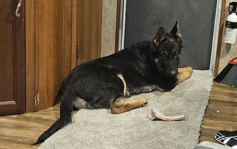 Doofles is a beautiful german sheogard he is energetic and friendly ge is 6 months old born in august he is going to be a big boy arpund 95 lbs . He has been raised arounfca baby and loves her . He loves other dogs and even cats ! Doof has an exelent recal and is kennel trained and 100% house trained . He needs a good home with soace to run and play .