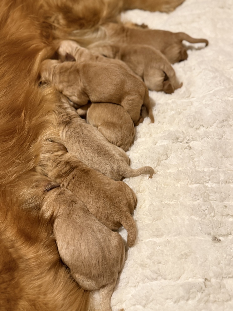 Purebred Golden Retriever Puppies for sale; both parents are AKC registered! Puppies were born on January 5th, pups will be vaccinated and dewormed before pick up! We have both males and females they will be ready to go home when they are 7 or 8 weeks. We have a second litter and they are more expensive. They will be read to go home late February, early March.