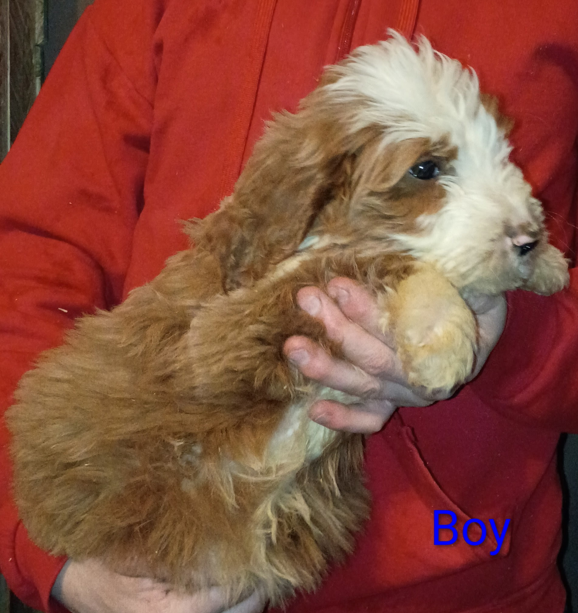 We have some sweet Bernese golden doodle mix puppies actually called golden mountain doodles. Born the 15th of November. 2 males left. Really loving and affectionate. They have been pretty good about potty training. Very few if any accidents. They love children and are amazingly intelligent. I copied some information directly from Google about this type of designer breed dogs. (Golden Mountain Doodles, a mix of Golden Retriever, Bernese Mountain Dog, and Poodle, are highly sought after for their gentle, affectionate, and loyal temperament, often acting as calm, smart family companions. They are generally low-shedding, highly trainable, and adaptable, making them great for, active families and therapy work.