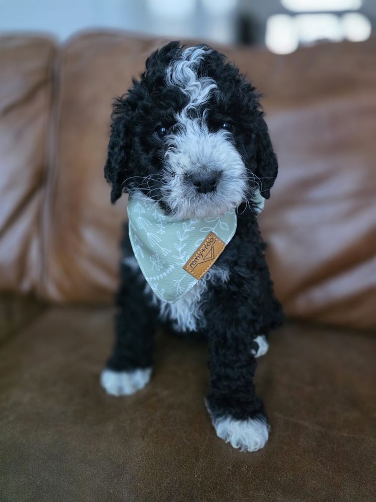 Hi! We have 4 mini bernedoodles for sale! They are 10 weeks old and have had their first shot, microchip, and vet check completed. These puppies have the calmer bernedoodle demeanor and are ready to go to their forever homes today!