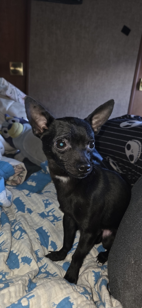 This is boss he is a 7 month ols 3 1/2 lb chihuahua He is Not gonna get much bigger than this at all boss is 99% potty trained . He is the biggest little love.Bug loves children is not a barker and is super teeny and travel size! He up to date on shots and looking for his forever family his mom was 5 lbs and dad is 3 lbs he will not get over five pounds! He is going to stay super tiny and is looking for a family who wants a tiny companion. He is currently not fixed.