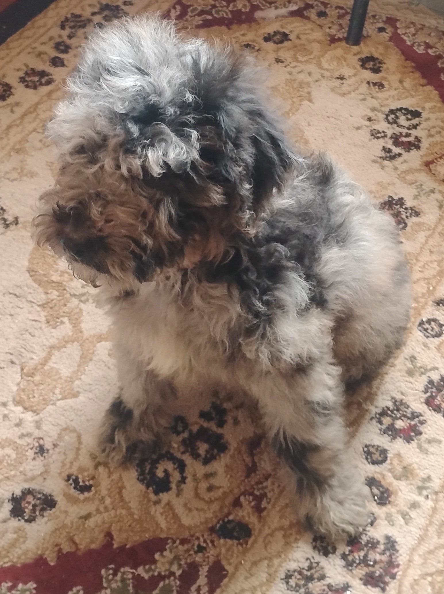 Golden mountain doodle puppy. Its a boy and he loves people. He had his first set of shots and tail is docked. I can show him on Sunday to anyone who is interested. Contact for any questions.