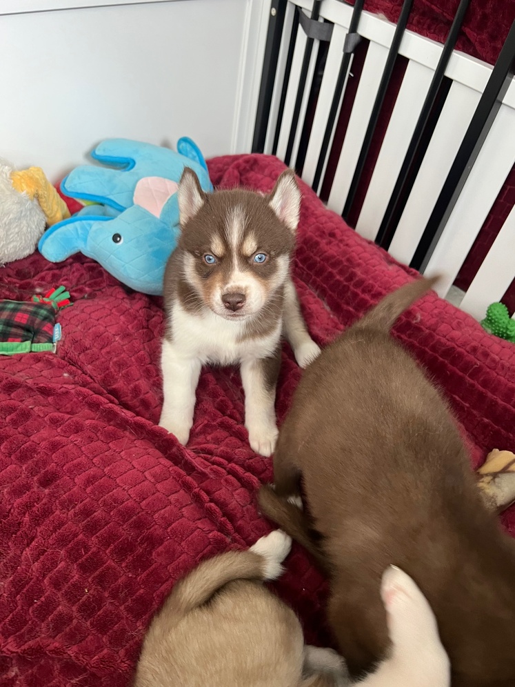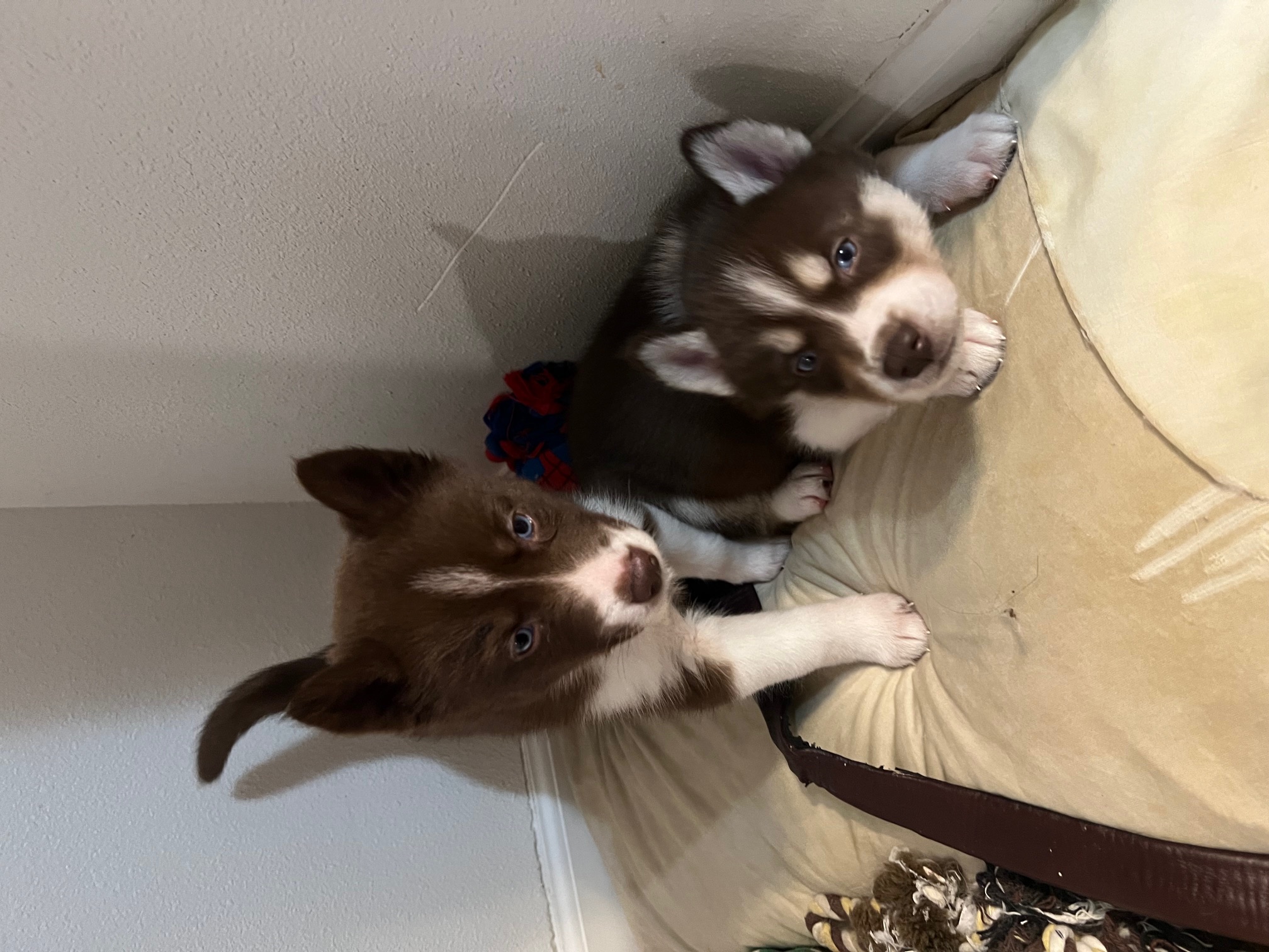 We have 4 beautiful Siberian Husky puppies still looking for their forever homes! They will come with 1st set of vaccinations and will be deworm treated. Both males and females available. born Feb. 3rd All have stunning blue eyes Sire. AKC Siberian Husky with a gorgeous red coat Dam. Beautiful chocolate and white Husky Healthy. playful. and full of personality. This was an unplanned litter. so we're offering them with a very affordable rehoming fee to help them find a new home. Looking for them to go to active families who understand the Husky temperament and can provide plenty of exercise. training. and attention. Located in Anchorage. Text preferred for quickest response. Can provide additional photos/videos.