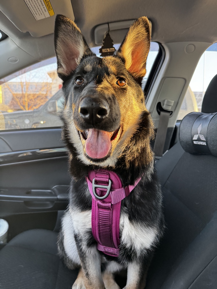 Shes energetic, loyal, and loves being around people. German Shepherds are known for their intelligence and trainability, making them great companions, family dogs, and protectors.