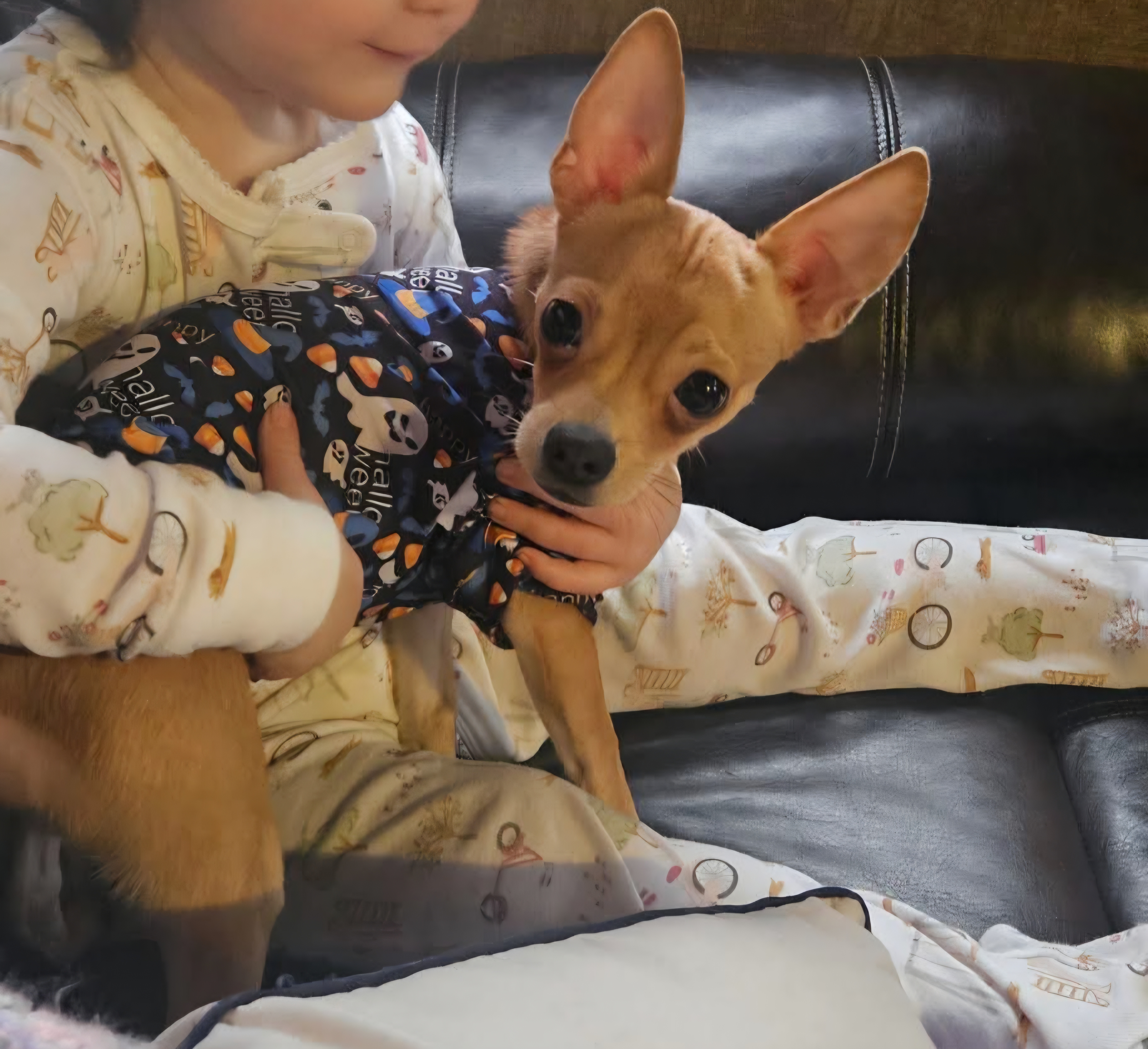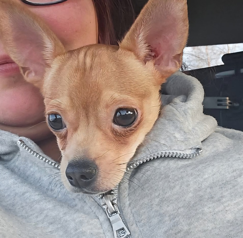 This is potato! He is the sweetest little Chihuahua.You will ever meet! Potato is 5 and a 1/2 pounds, so he is very small.He loves children so much.He gets along well with all other animals.He is not met in animal that he does not like. Potato is house trained.He will potty outside or in a litter box with pellets. Potato is up to date on shots and was born in september . So he is almost 8 months old. He is not a barker , he hardly makes a noise actually , except for when he is super super excited for you coming home , he squeaks lol . Potato loves to play.He's great in the car and he is just an all around amazing little guy! If you're interested in potato , send me a text message.