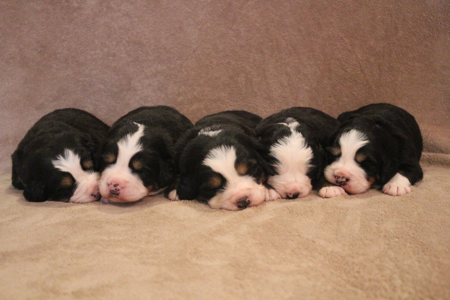 We are thrilled to announce this beautiful litter of purebred Bernese mountain dog puppies born March 28th right here in the Valley. These puppies are being raised with love and care in the center of our home. Surrounded by children, cats, and other dogs, these sweet pups are being well socialized and prepared for their forever homes.