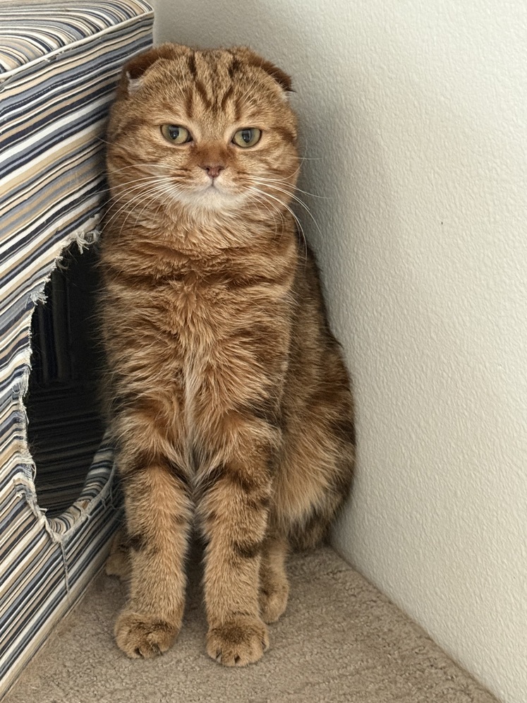 Scottish Fold kitten. An adorable shorthair Scottish Fold kitten - a male named Jelvis. DOB - 05/17/2025. He is registered WCF, pedigree. The kitten is vaccinated (including against rabies), treated for parasites, neutered. He has a calm and very affectionate temperament, and gets along wonderfully with children, family members, other pets. The kitten is littered trained and accustomed to using a scratching post. He eats both dry and wet food. I would be happy to answer any questions you may have via private message.