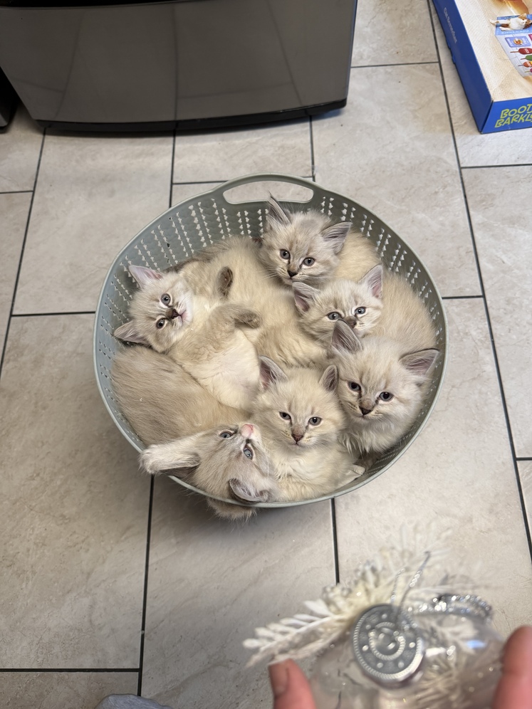 Six ragdoll kittens, three boy three girl they are seven weeks old, beautiful, playful,( blue eyes )