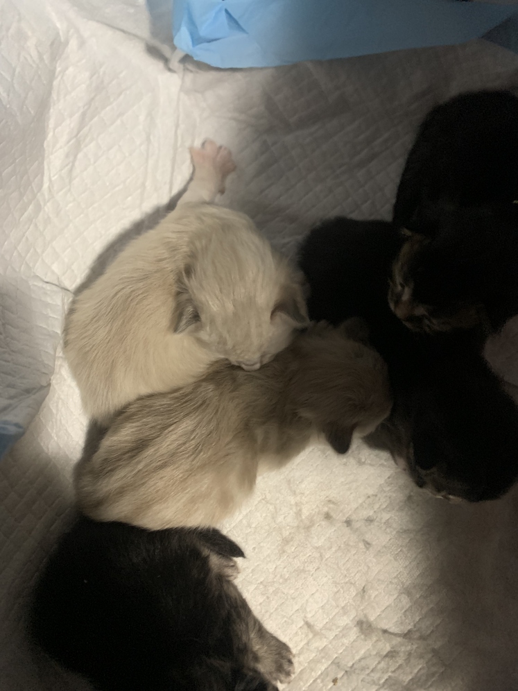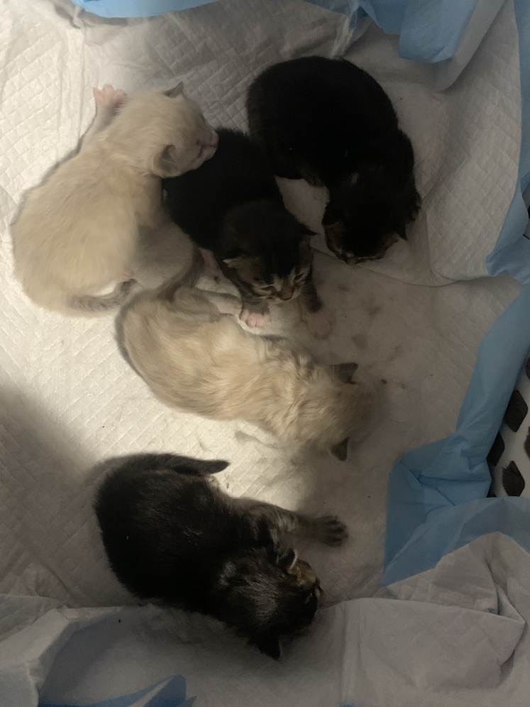 2 week old kittens looking for a new home. 1 girl and 4 boys If you want more information and pictures please text!
