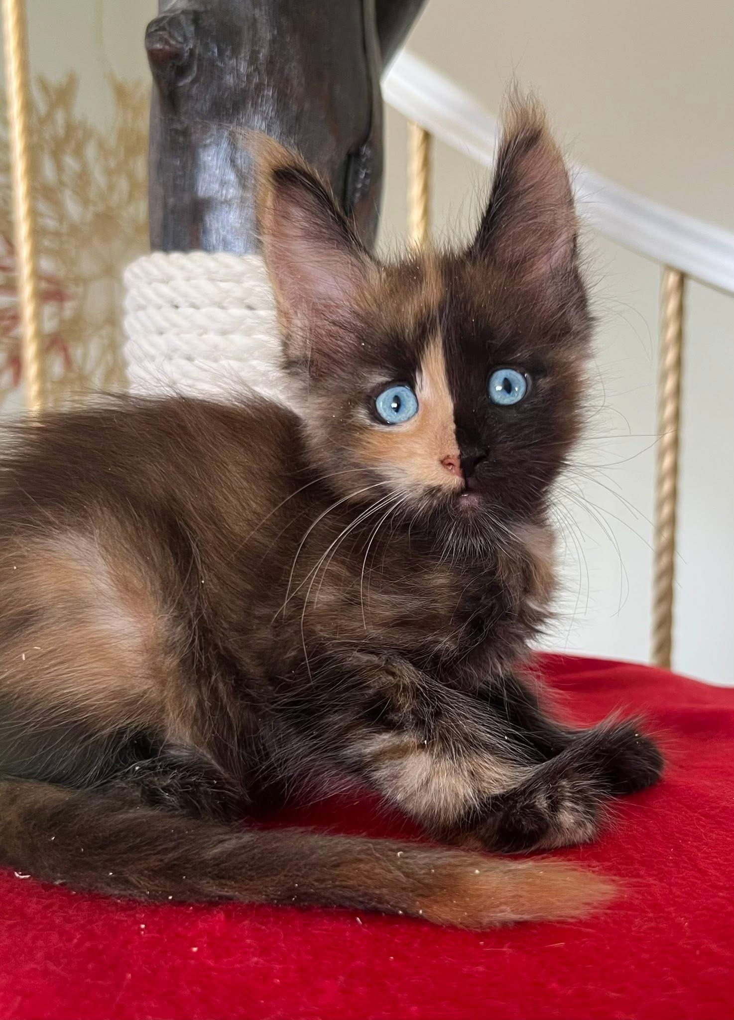 This little queen is the definition of "once-in-a- lifetime" Imported European maine coon kitten for adoption. Kitten comes with Pedigree, passport, microchipped, spayed and vaccines up to date. Please only serious inquires, call for more information.
