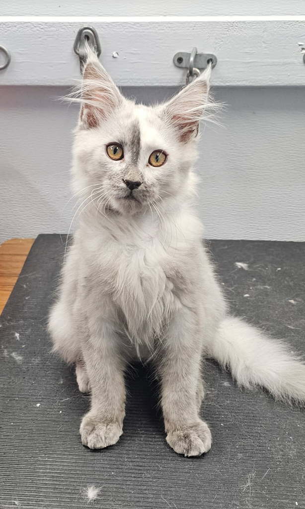 Say hello to Balthazar, a stunning Maine Coon kitten from Florida! Born on September 7th, 2025, this high black smoke boy has a gorgeous silver-toned coat and an even more beautiful personality.