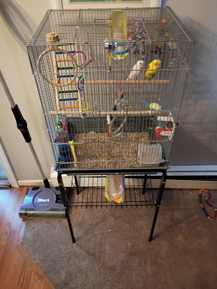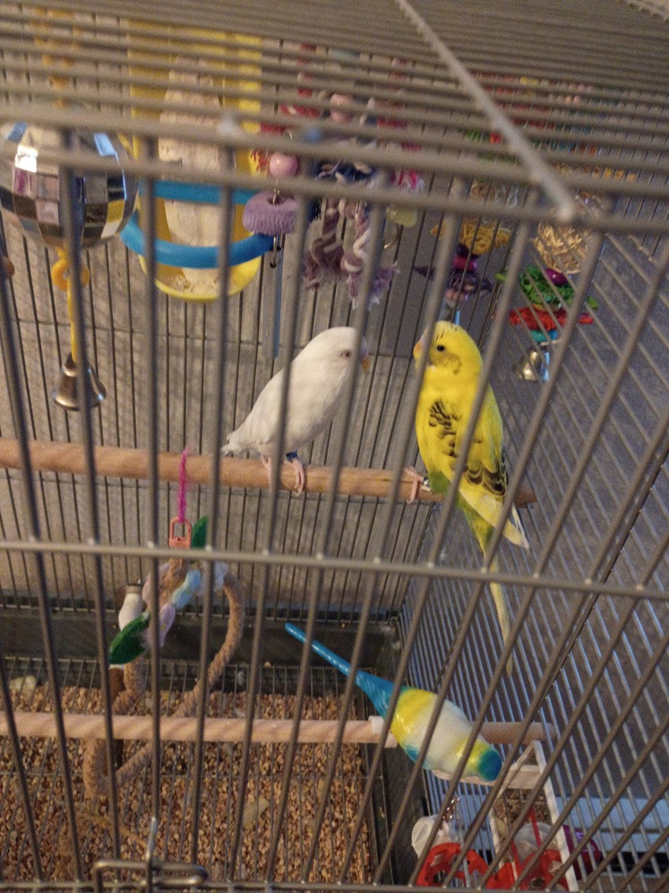 2 Female Parakeets with cage and supplies. Free to good home. Need them rehomed asap. Thanks. key: ftgh