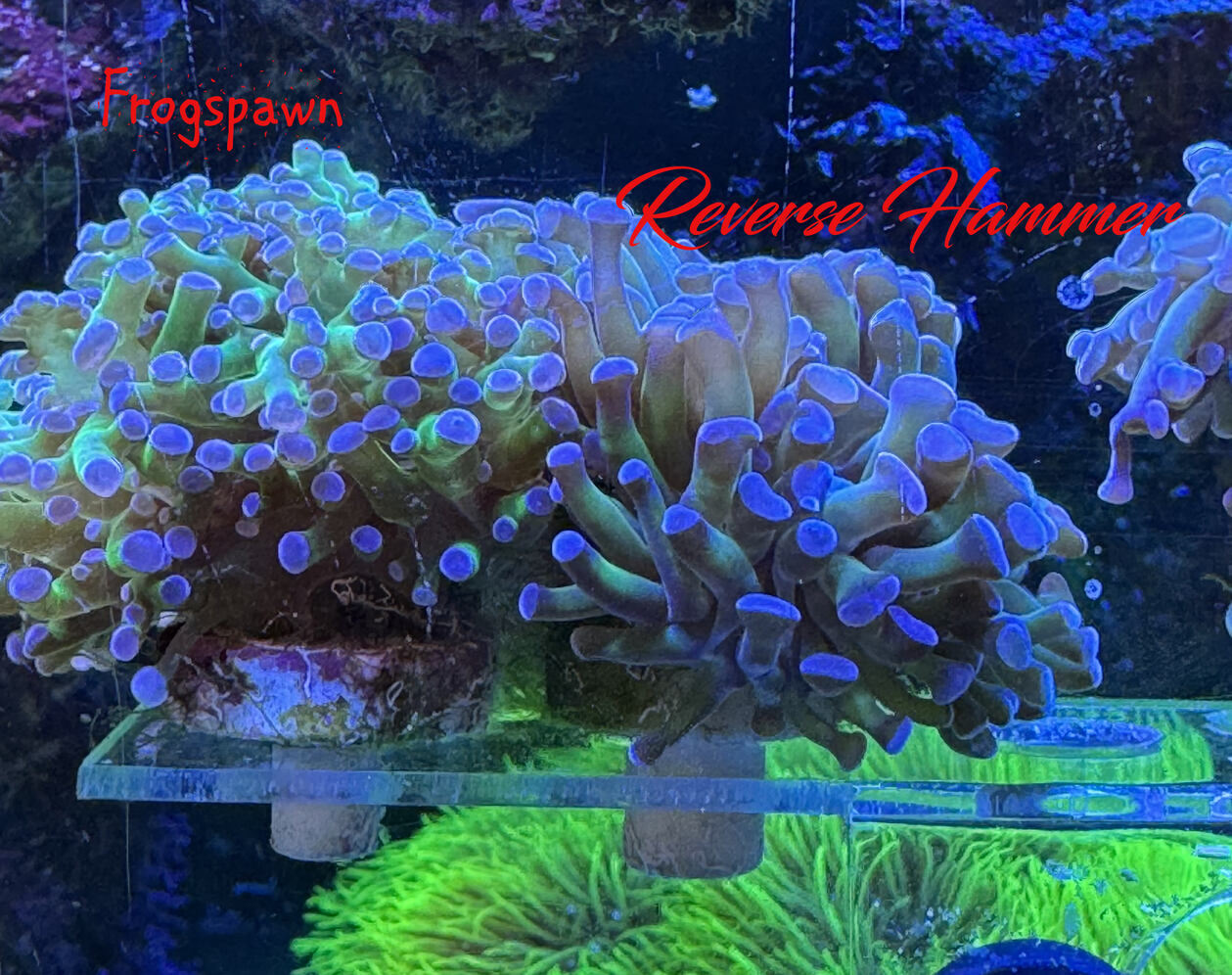 I have 2 hammer corals frags and Frogspawn frag all with 2 heads. I also have SPS like orange starburst plating monti, green flower pedal monti, blue Staghorn, orange monti setosa, Cali tort, and bubble gum monti digita.