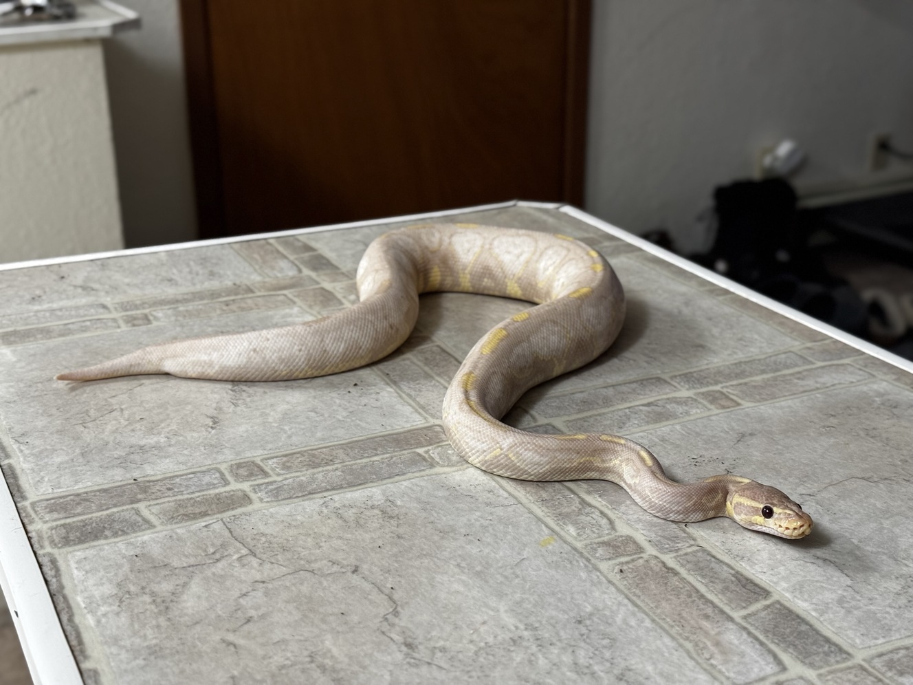 Not sure what morph she is but she gets more yellow with every shed, she’s a pretty girl. She’s a great eater and never misses a meal, eating f/t. $200 obo. Please send a text if interested.