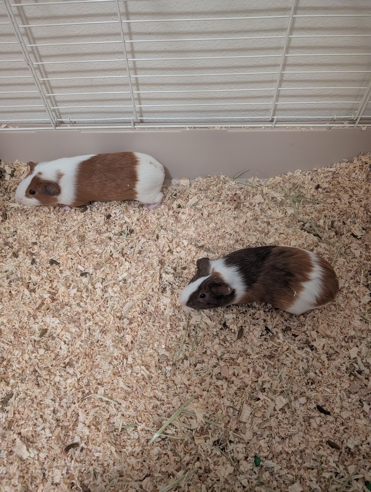 2 Guinea Pigs. Two 7 month old male guinea pigs. We are PCSing to California and cannot take them. 75 for both and the huge cage set up