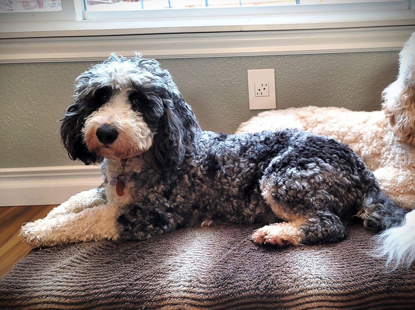 Hiland Doodles is offering our Mini Bernedoodle Male, Kody, for stud service. Kody is 35# and is a tricolor merle. He has been health tested through Embark and his full genetic traits are available. He is proven and has had beautiful, loving, and intelligent puppies.