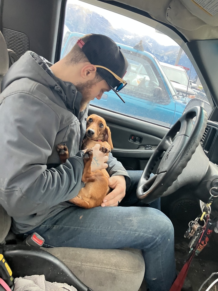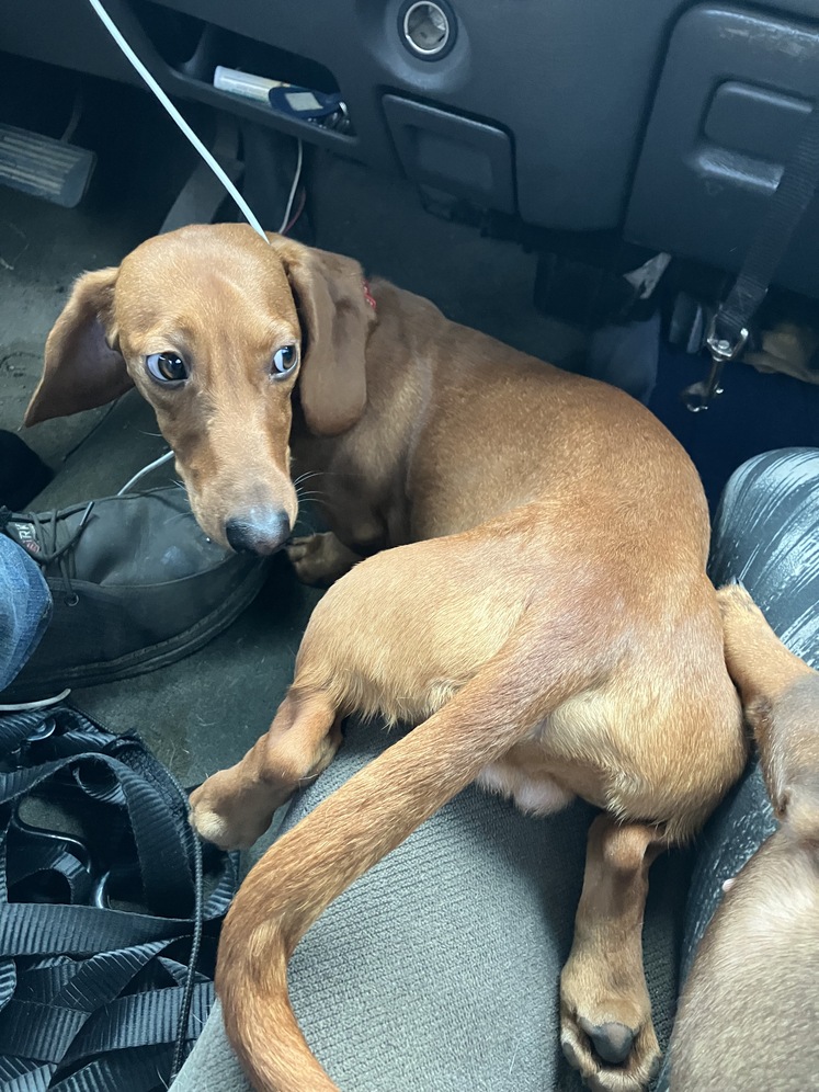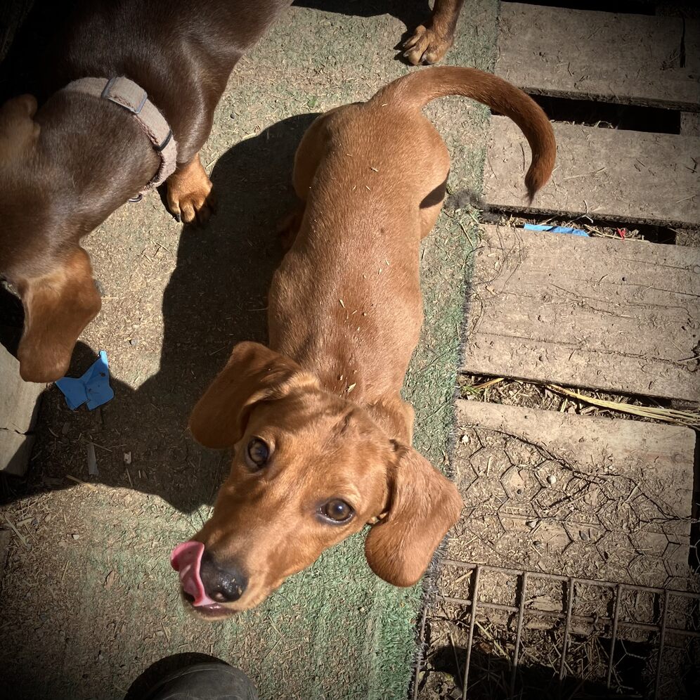 A5 Wagyu is the son of the one and only Corn dog. A5 Wagyu comes from AKC red, brindle lines on his dads side and red hunting dogs from Germany on his moms side. He is a beautiful red boy with the most goofy personality. He has a long back and super long tail. He’s got a loud mouth with opinions to share but is also the most loving dog who adores anyone and everyone. He’s very sturdy and feels like a brick when you hold him. He’s NAPR registered and has Embark DNA testing. He is a black nosed red. He carries cream, longhair and roaning. He does not carry chocolate, piebald, dilute, Merle, mask, wolf sable, black, brindle, ect. Pretty much you can expect red puppies with black noses and paw pads unless the female is Merle or Carries cream. If the female is longhair or Carries longhair then you can expect to have both long and short haired pups. He’s 16lbs.