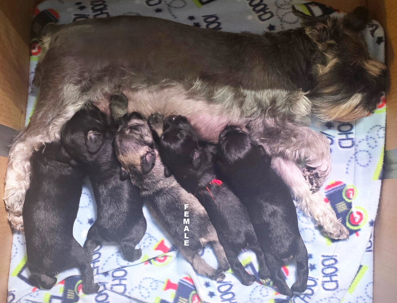 AKC Min Schnauzer puppies. Born 1/11/26 will be ready for their forever home on 3/8. Impressive black/white markings. Full AKC registration, vet check, first shots, dewormed, dew claws and tail docked. Used to children and live in home. 4 males, 1 female. Make a deposit and give your Valentine a coupon/pic! $2600 males 2900 female. Call or email Marlea
