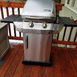 Quantum infrared cooking system eliminates flare ups, Sears food while keeping juices and flavor intact, Compact size, Electronic ignition, Sturdy stainless-steel cart design with folding side shelves, Includes 340 square inches of primary cooking space and 125 square inches of additional space, Includes a propane tank and spare full propane tank, Model 463270611, New cost was $285