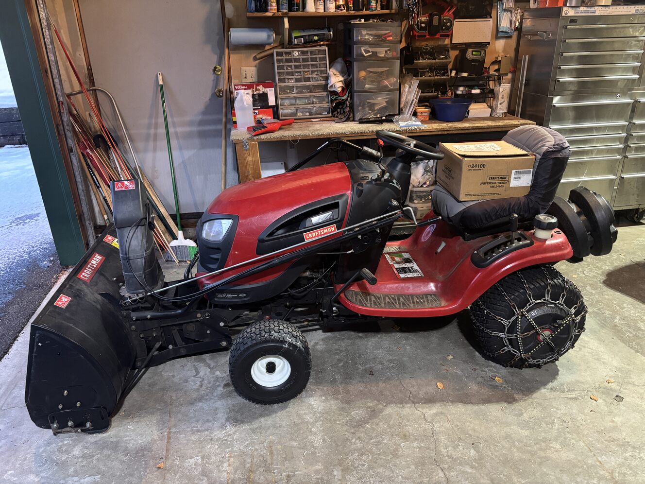 Craftsman Lawn Tractor with installed 42inch snowblower. Lawn tractor has 24HP engine with electric start and auto transmission. Also has new battery. Little used and runs perfectly.