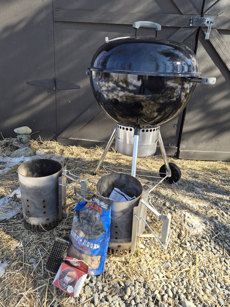 Like new Weber kettle grill. Hardly used Temperature gauge, ash catcher and other assessories.