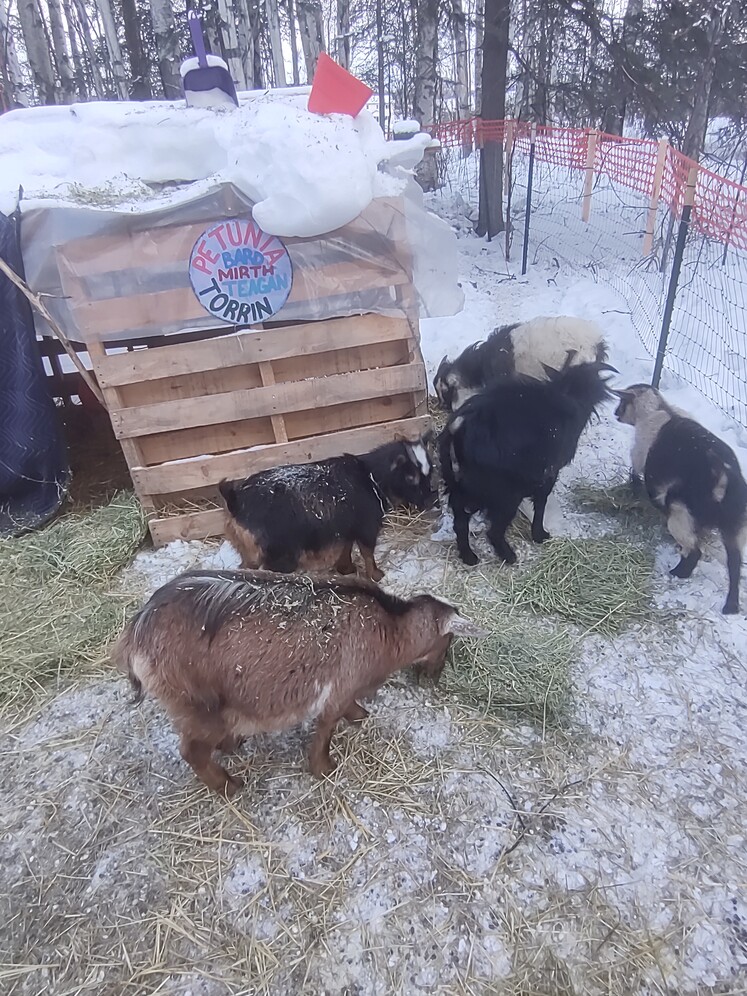 Torrin, Mirth and Petunia $300 together: all 3 years old. Torrin is a black ND buck with white markings and horns. Good buck, takes care of his ladies. Very sweet and loves kisses and pets. Mirth is a tiny ND doe that is brown, black and white with tiny tiny horns. She is very skittish but according to her previous owner was a bottle baby. Petunia is an ND/Nubian cross with no horns and is brown and white. Shes ok with pets but would prefer to initiate contact herself.