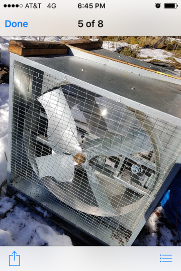 I have two sets of 36", 1/2 horse power, slant walled exhaust fans and louvers that I bought to install in a greenhouse but ended up not needing them. The fans are still in box new. I paid $600 for each, asking $300 each.