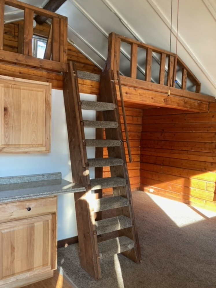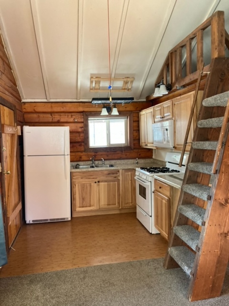 36655 Edgington Rd, 1, Cabin #1, Soldotna, AK 99669 1 Bed - 1 Bath $1,050.00/mo Sq Footage: 320 $1,050.00/dep Cozy studio log cabin with bedroom loft, private bath, and full kitchen with hickory cabinets. Property Features: Refrigerator/Freezer, gas range, over range microwave, gas Monitor heating, private storage unit, and covered deck. Pet dog may be approved on a case-by-case basis. Lease Terms: 12 months