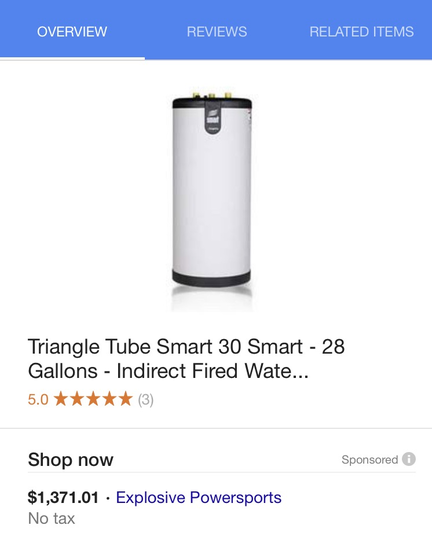 Stainless Steal Indirect Fired Water Heater Triangle Tube Smart 30 (BRAND NEW) Paper Work Included 3x faster than conventional gas or electric water heater. Lowest pressure drop water heater to-date. Self cleaning / Self rescaling heat exchanger. 2" Polyurethane foam insulation Exclusive "tank-in-tank" design. $650 OBO