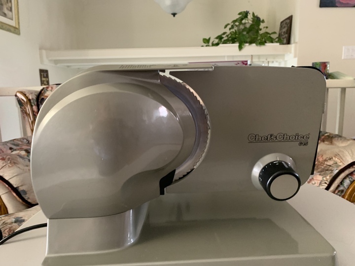 I have a Chef's Choice's most popular food slicer offers high performance slicing at a great value. Ruggedly built of cast aluminum and stainless steel, it features a cool-running, high-torque motor for smooth, even operation and ultimate safety. Its tilted, large-capacity food carriage promotes fast, efficient slicing of large cuts of meat like roasts, ham and turkey breast. All parts remove for easy cleaning. Includes instructions. Just the the two of us so don’t need it. This model 615 sells for $157 on Amazon. I’m selling ours for $50 obo. Call 907-715-4034.