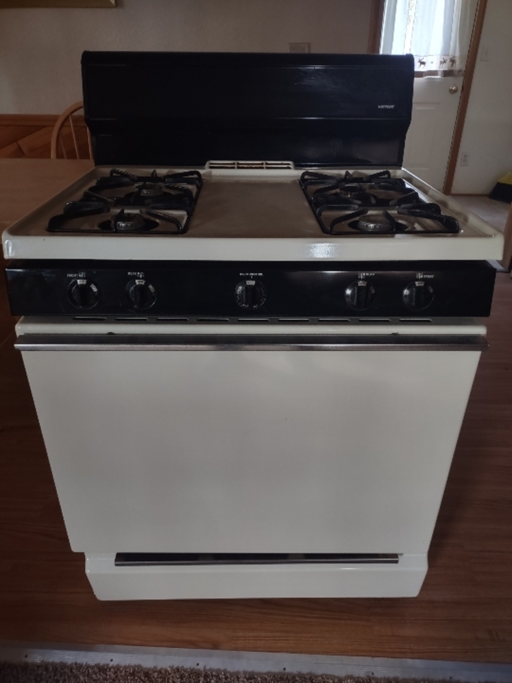 Full size 4 burner gas range/oven in like new condition. Used very little. White in color.
