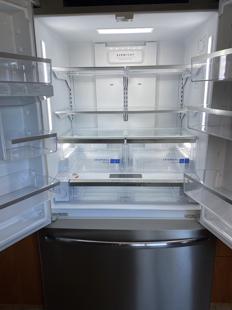 Frigidaire Gallery Double Door Refrigerator. 23 cu. ft., 70" high, 36" wide, 30-3/4" Deep Internal filtered water and ice maker (never used) Advanced crisper Purchased from Dan's Appliance for $2,100 Barely used, new 6 months ago