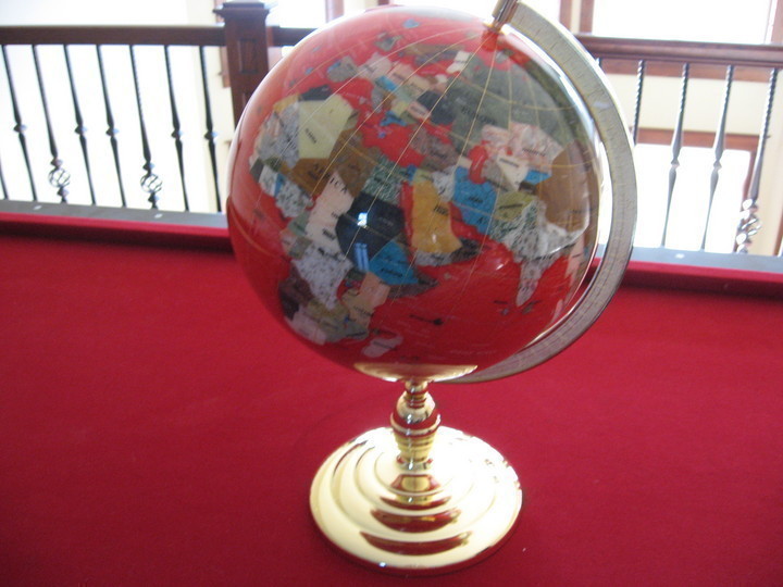 Gold Tone Multi-Gemstone World Globe - Red
