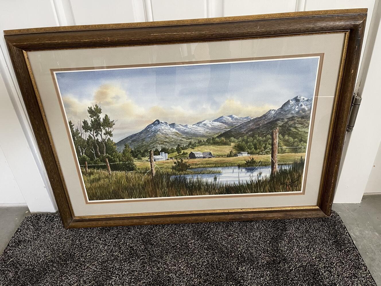 Jim Knudson 1981 Watercolor Print. Jim Knudson 1981 untitled watercolor of the beautiful Matanuska Valley. 16” x 26” framed.