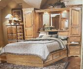 Furniture Traditions Masterpiece Pier Headboard Group with matching dresser. Northern Red Oak Queen headboard with 2 piers, lighted mirror and bookcase. Each pier has 3 shelves, 4 drawers, velvet lined jewelry trays and a pull out side tray. Bookcase area has 2 ...