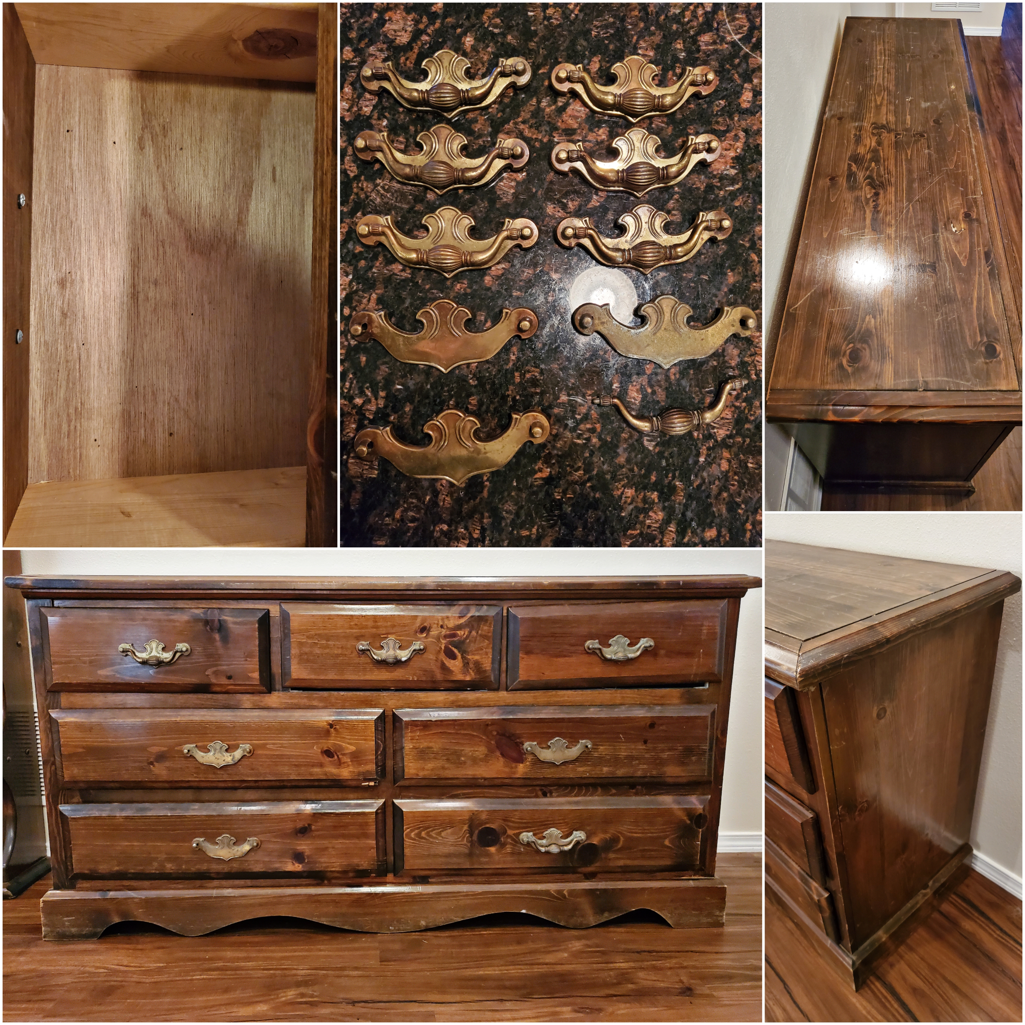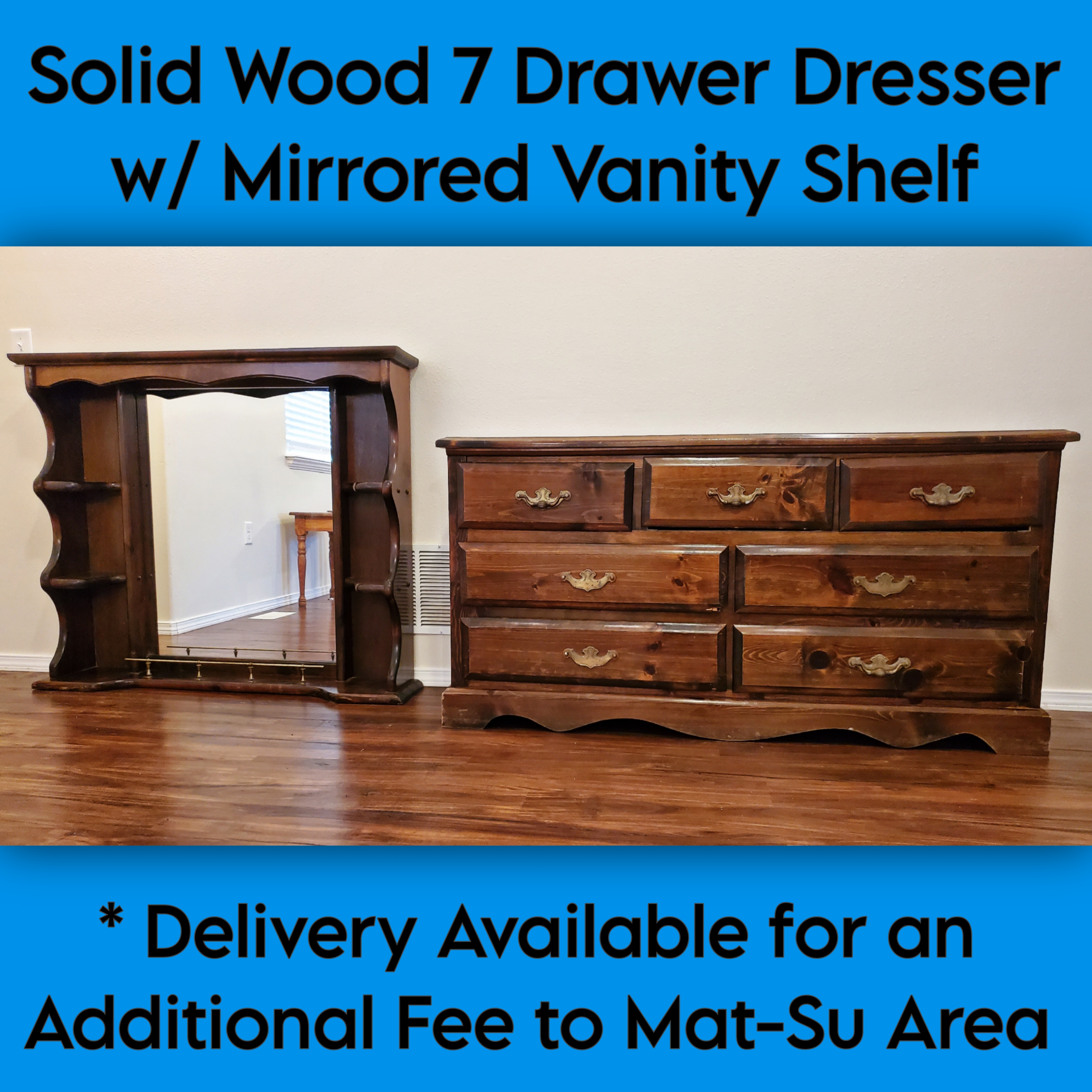 Solid Wood 7 Drawer Dresser w/ Mirrored Vanity Shelf
