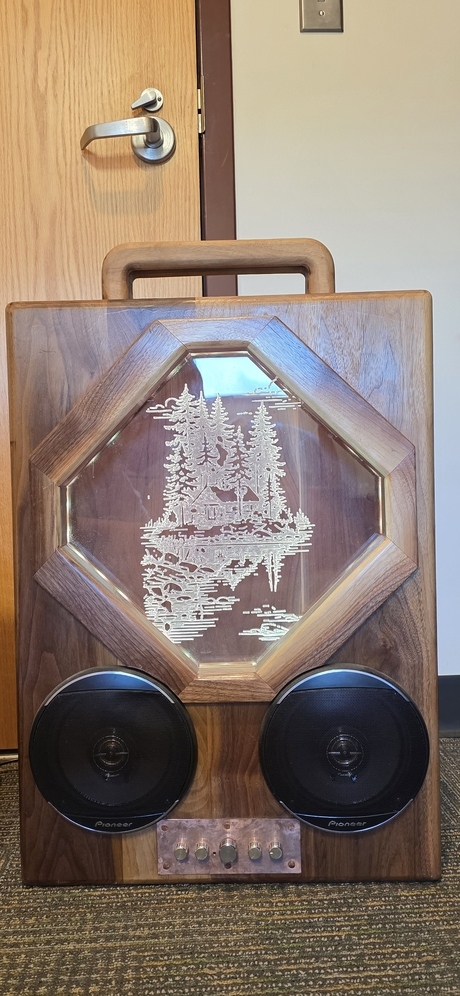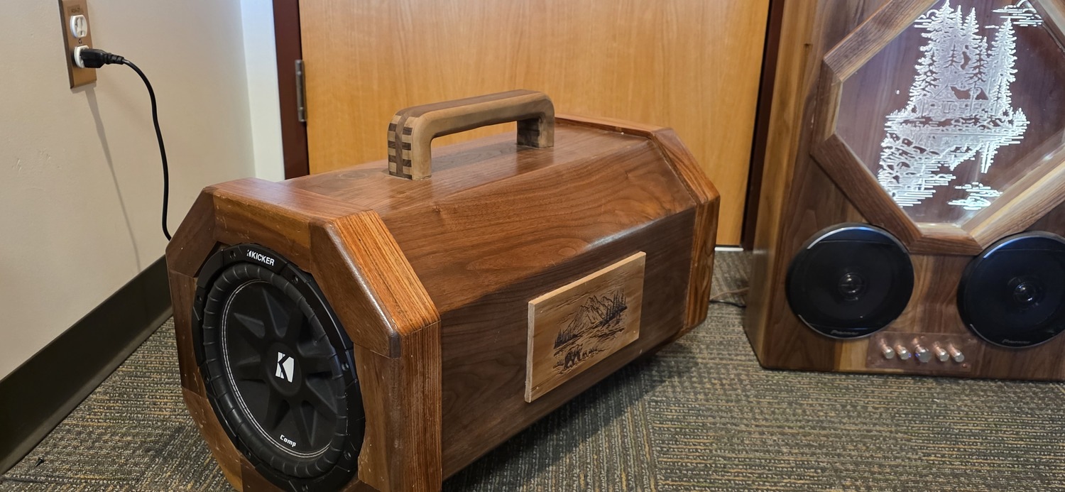 Alaskan Speaker System. Raising money to build a costom rifle, theres alot of information about this system, dm me for information it comes with the speaker system with 2 6in full range speakers and a sub set up with a 10in sub, walnut wood and glossy look finish. Its a 1 of 1 system and is Bluetooth compatible. I have videos and more photos, just ask!