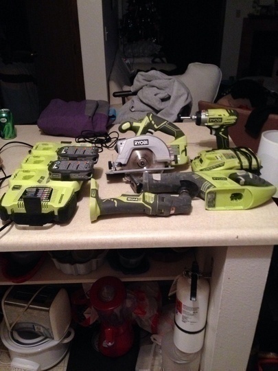 Jigsaw. Handsaw. 6 Slot super charger station. Stock Charger. Drill. 2x Batteries