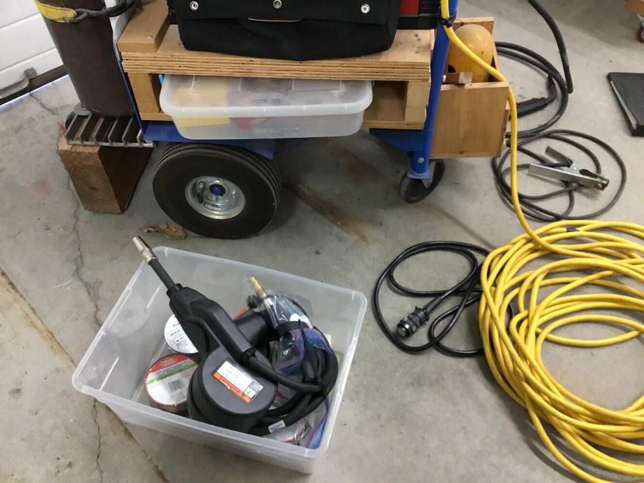 Model 180 Power MiG Dual. Can receive 120v or 240v. Making it handy for remote work. This is a complete setup. Has a new never used one LB spool gun. Two full bottles and gauges. One filled with Argon for aluminum and one filled with Argon Co2 Mix -for steel welds. Has a custom cart, 50’ extension cord. Unit is now set up for 240v but easily changed to 120v. Has almost full 10#. 035 core flux. Lots tips-shields-assortment of 1# spools. Calls only