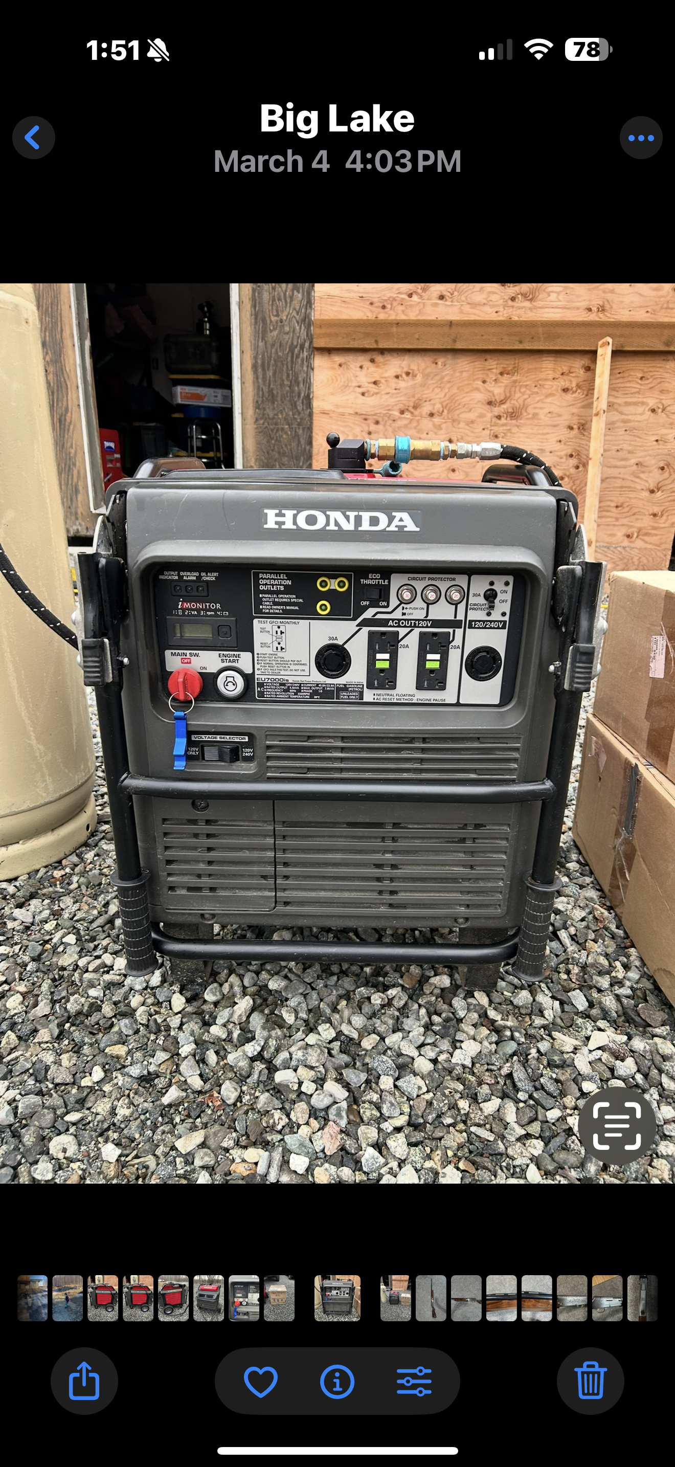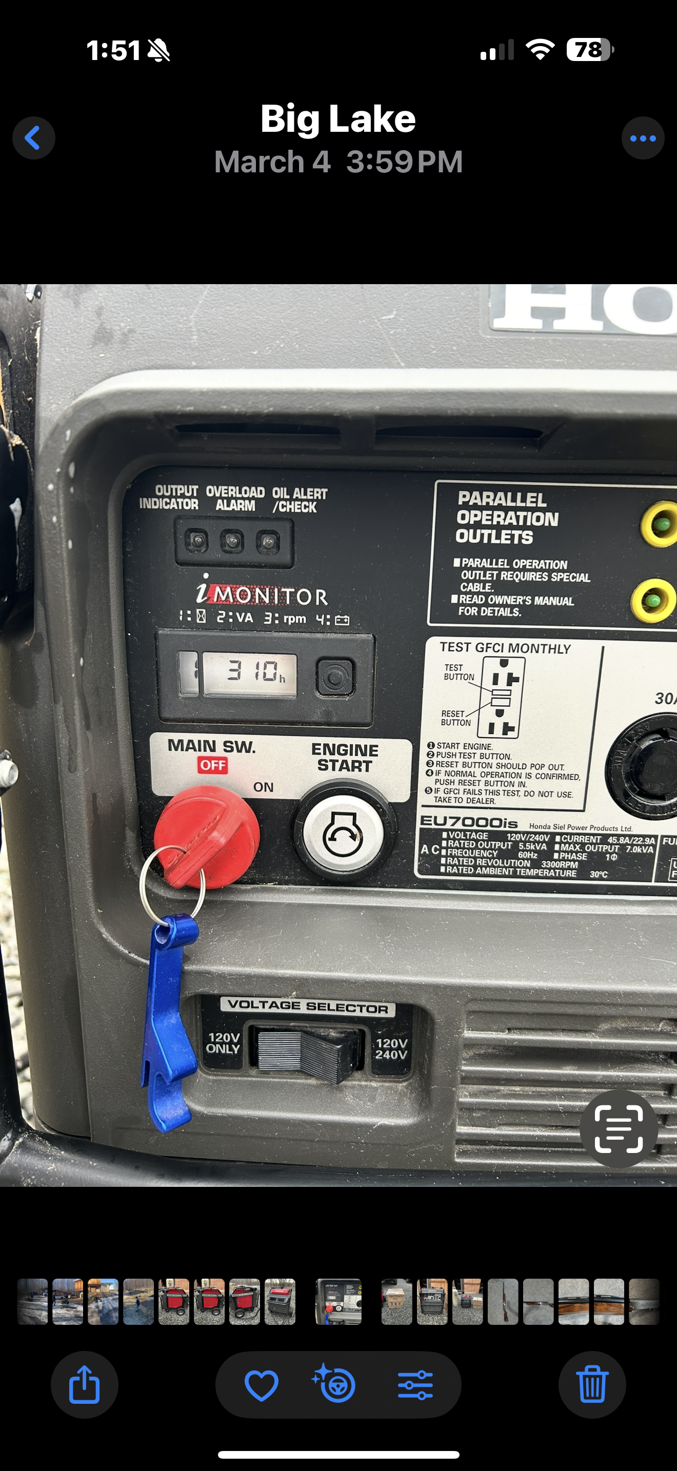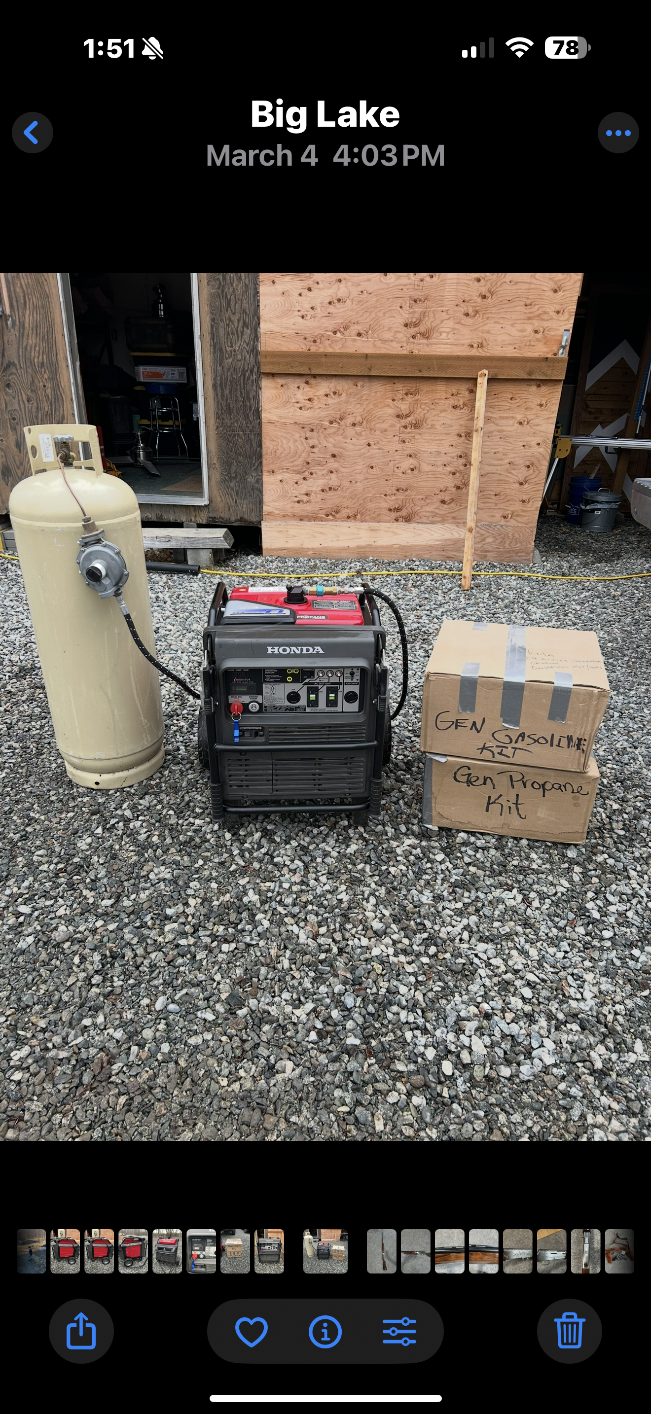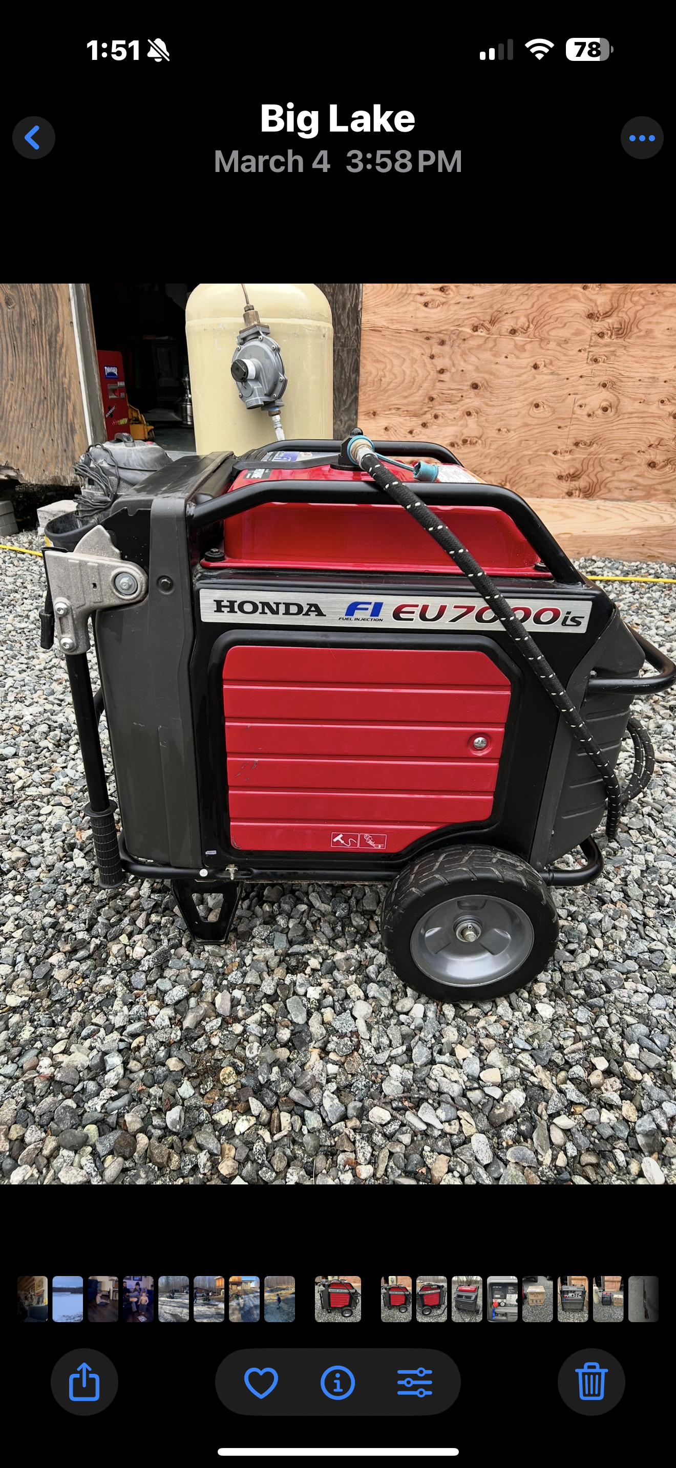 This is a Honda FI EU7000is propane’s powered generator that has 310 hours on it. All hours are propane powered. Includes a second brand new propane conversion kit and the original gasoline kit that was never used. Also includes the regulator, hose and a 100lb (24 gal) cylinder.