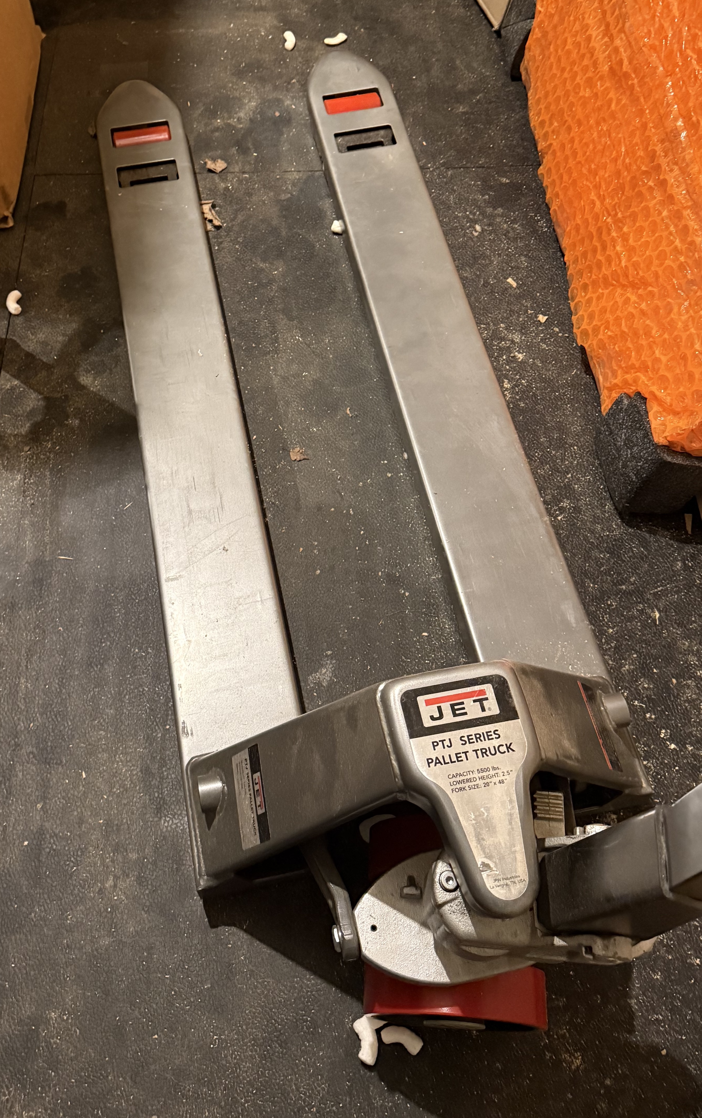 Jet JPW PT-2048JA, 20.5" x 48" 5500LB Pallet Truck. Bought new a year ago from AIH to unload a container filled with pallets. Like new condition. Retail $699