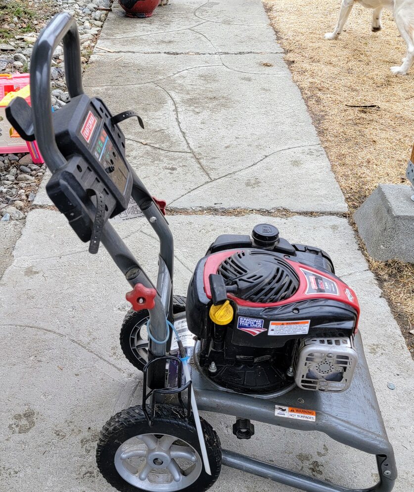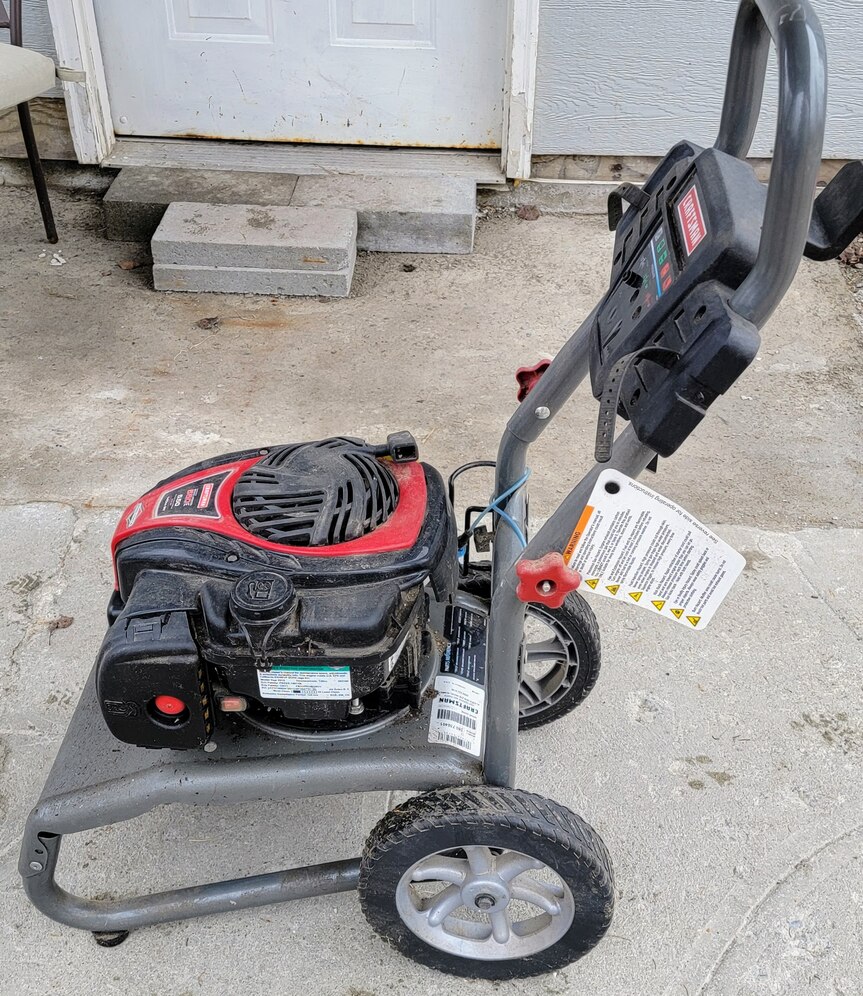 Craftsman pressure washer with Briggs & Stratton engine, Model 580-750401 Not currently running—likely needs a tune-up, it's been sitting for a while. It tried to start. Hose included (not pictured)