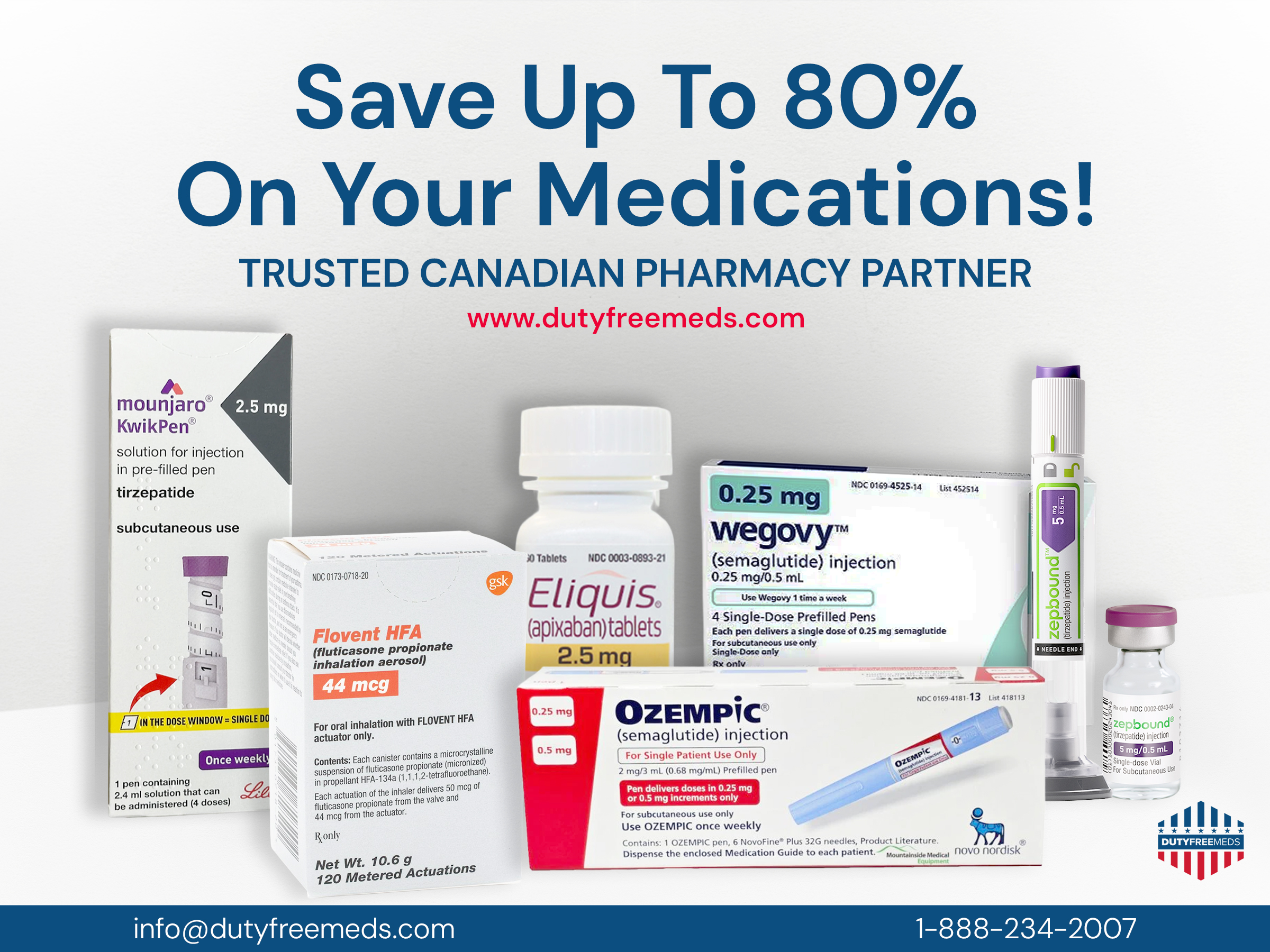 Tired of high pharmacy prices? Thousands of Americans trust Duty Free Meds, a prescription fulfillment service located in Central Canada.