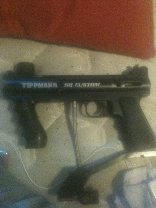 My woodsball paintball gear that I never use. Includes Tippmann 98 Custom 8 in. Barrel 12 in. Barrel 16 in. Barrel Flatline Barrel 1 large hopper o 3 small Co2 containers w/ some Co2 in each 1 pair of gloves 2 paintball canisters w/ belt 1 fan-cooled mask instruction manual, cleaning kit, and the tools for the kit $125.00 OBO