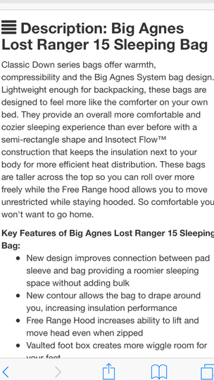 Big Agnes lost ranger 15F down sleeping bag pics for info and specs. Used for 3 years great bag, no tears or stains. 160$ obo