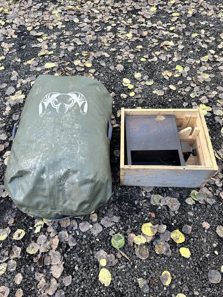 Arctic Oven 10’ X 10’. Well taken care of Arctic Oven. Comes with single burner propane working stove (without stove pipe and regulator), canvas floor, and Kuiu duffle storage bag. No rips or tears, camo rainfly (no vestibule), clean interior cloth.